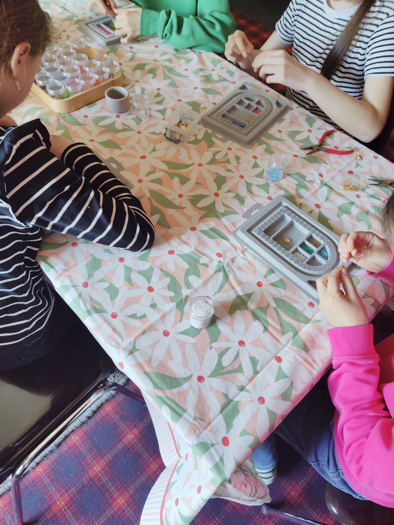Samen met de kinderen ga ik aan de slag met het maken van verschillende sieraden. Vooraf overleg ik met de ouders over de wensen van de jarige job.