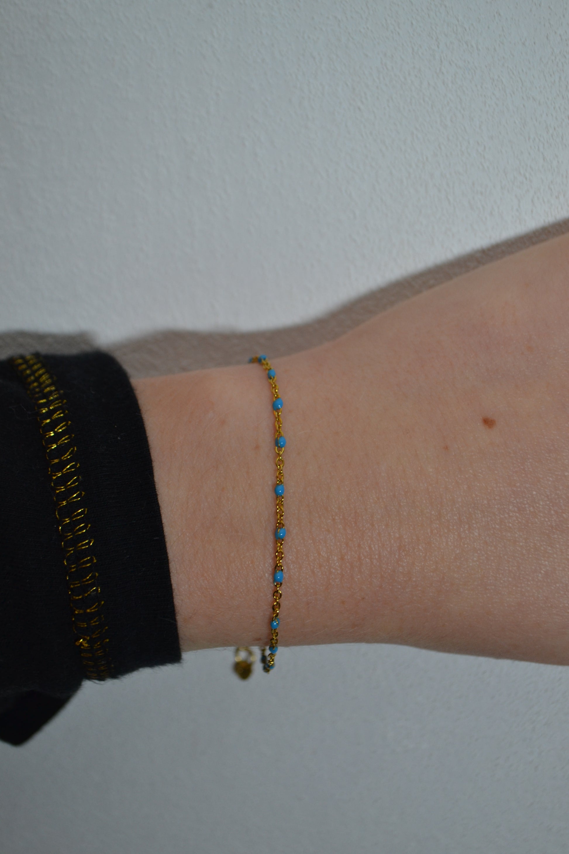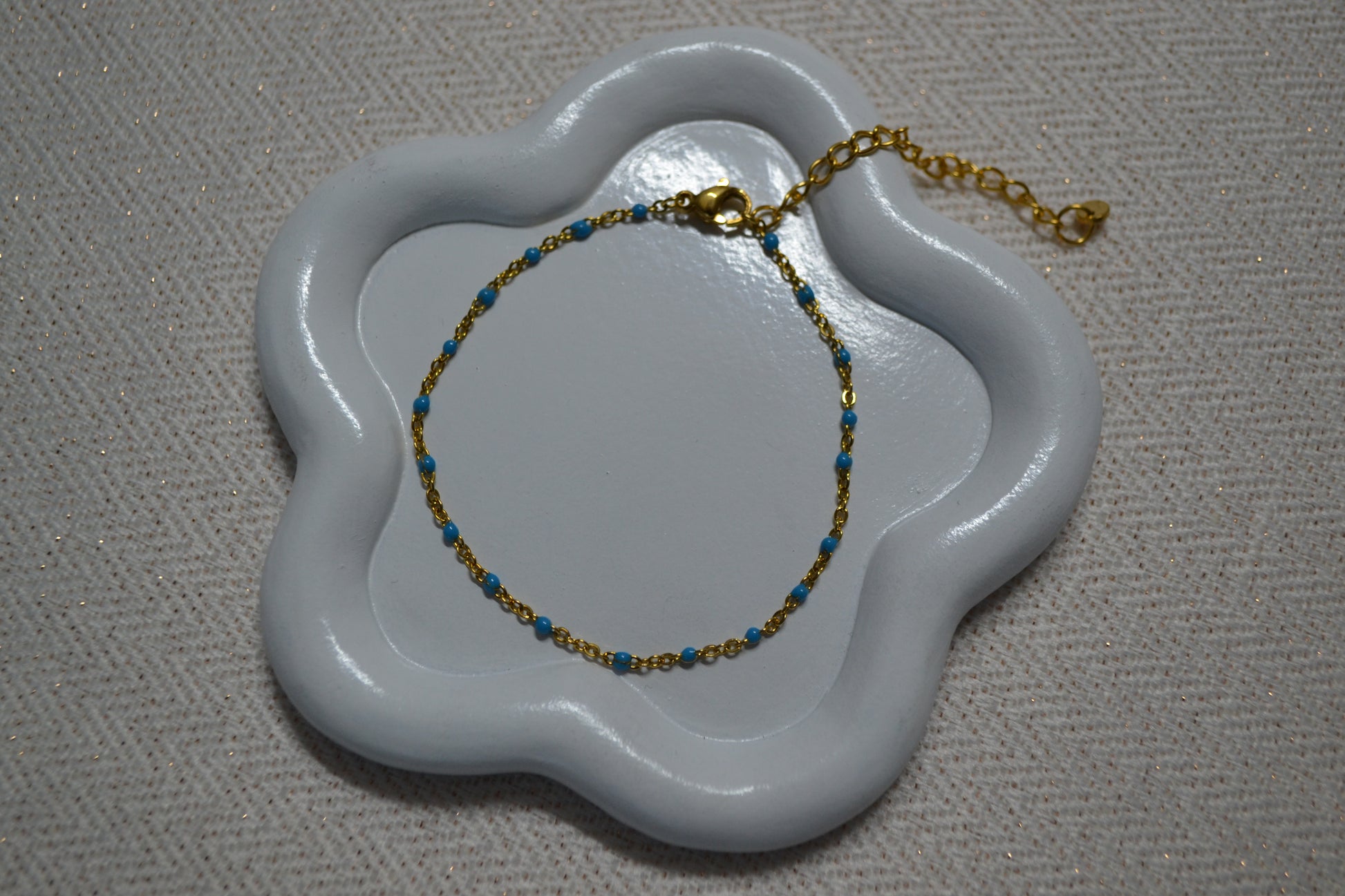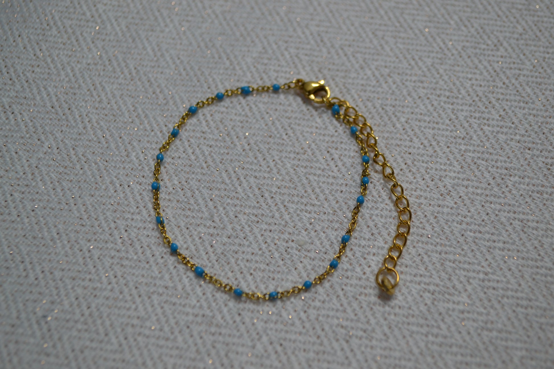 Een delicate armband met blauwe details. Ideaal voor wie houdt van een vleugje verfijning met een unieke twist. Draag hem solo of combineer met andere armbanden.