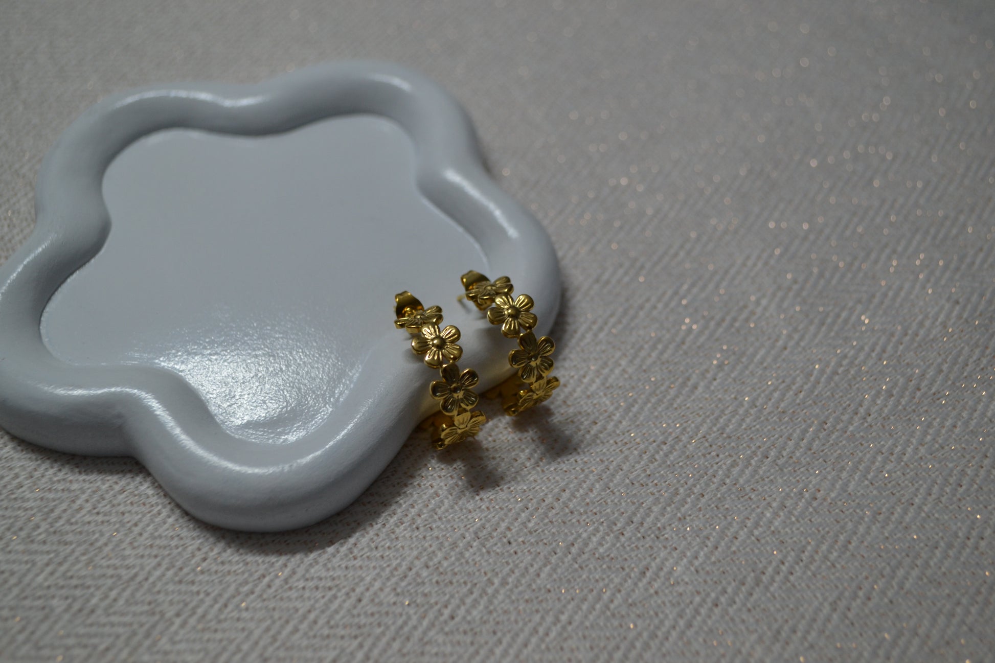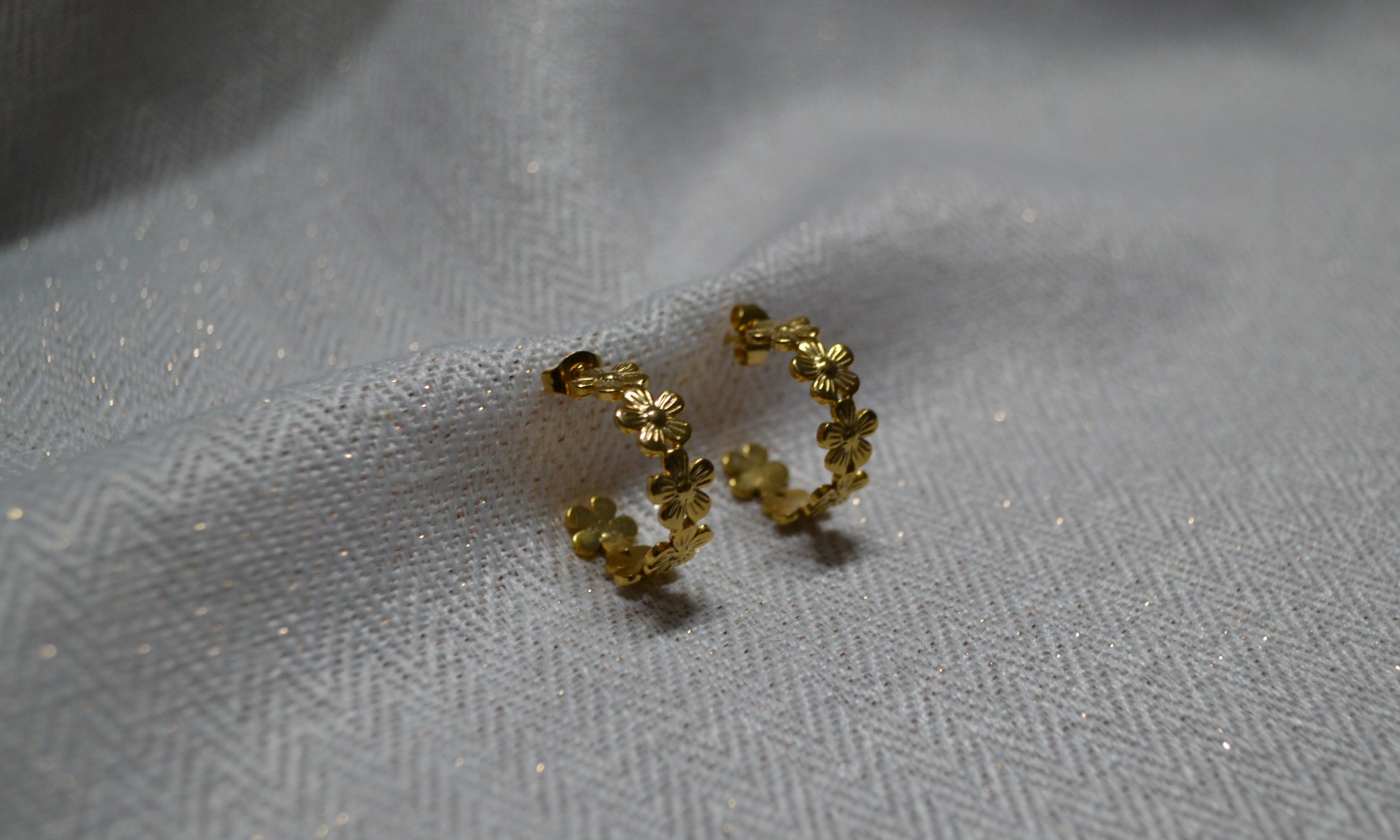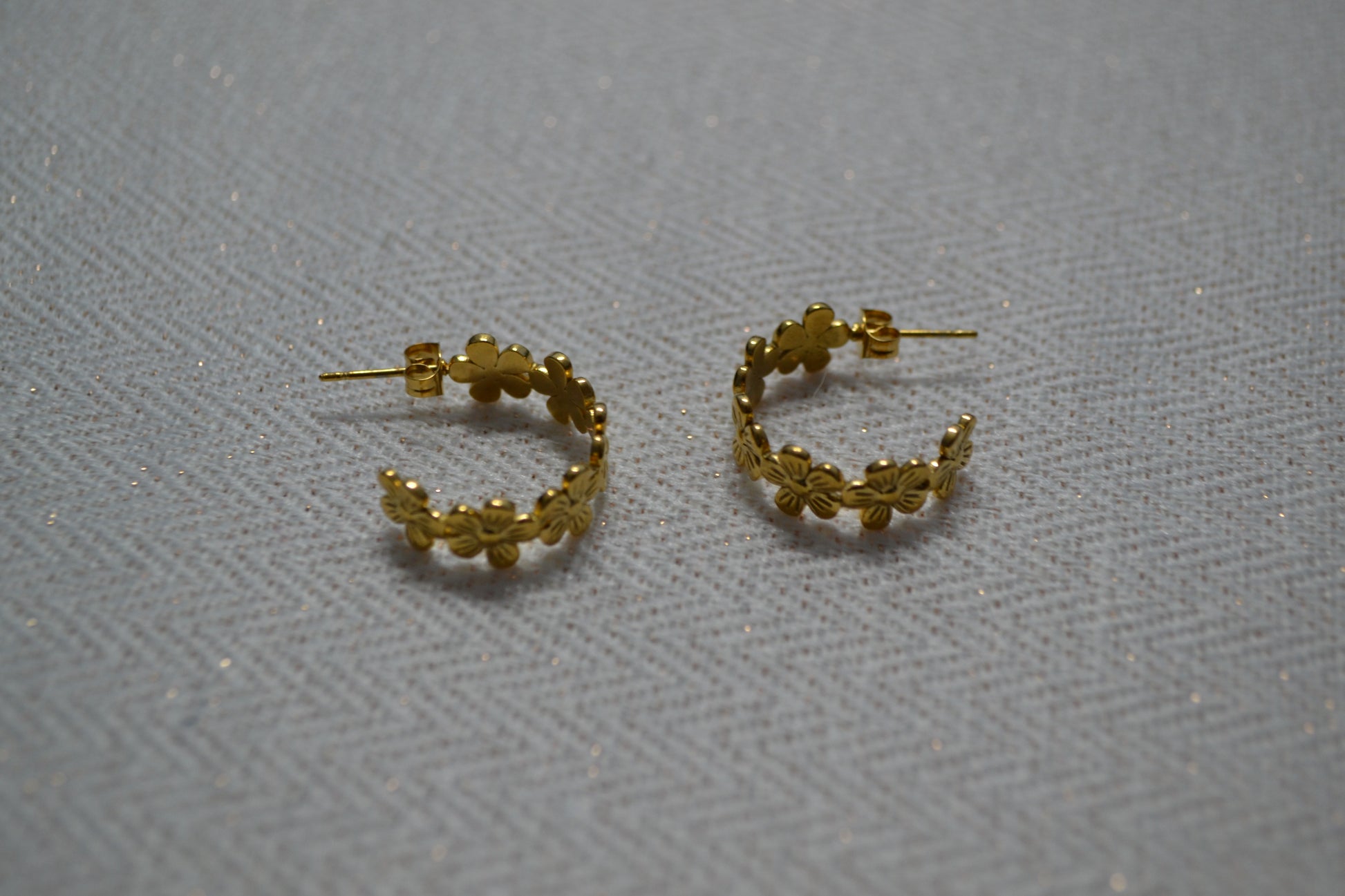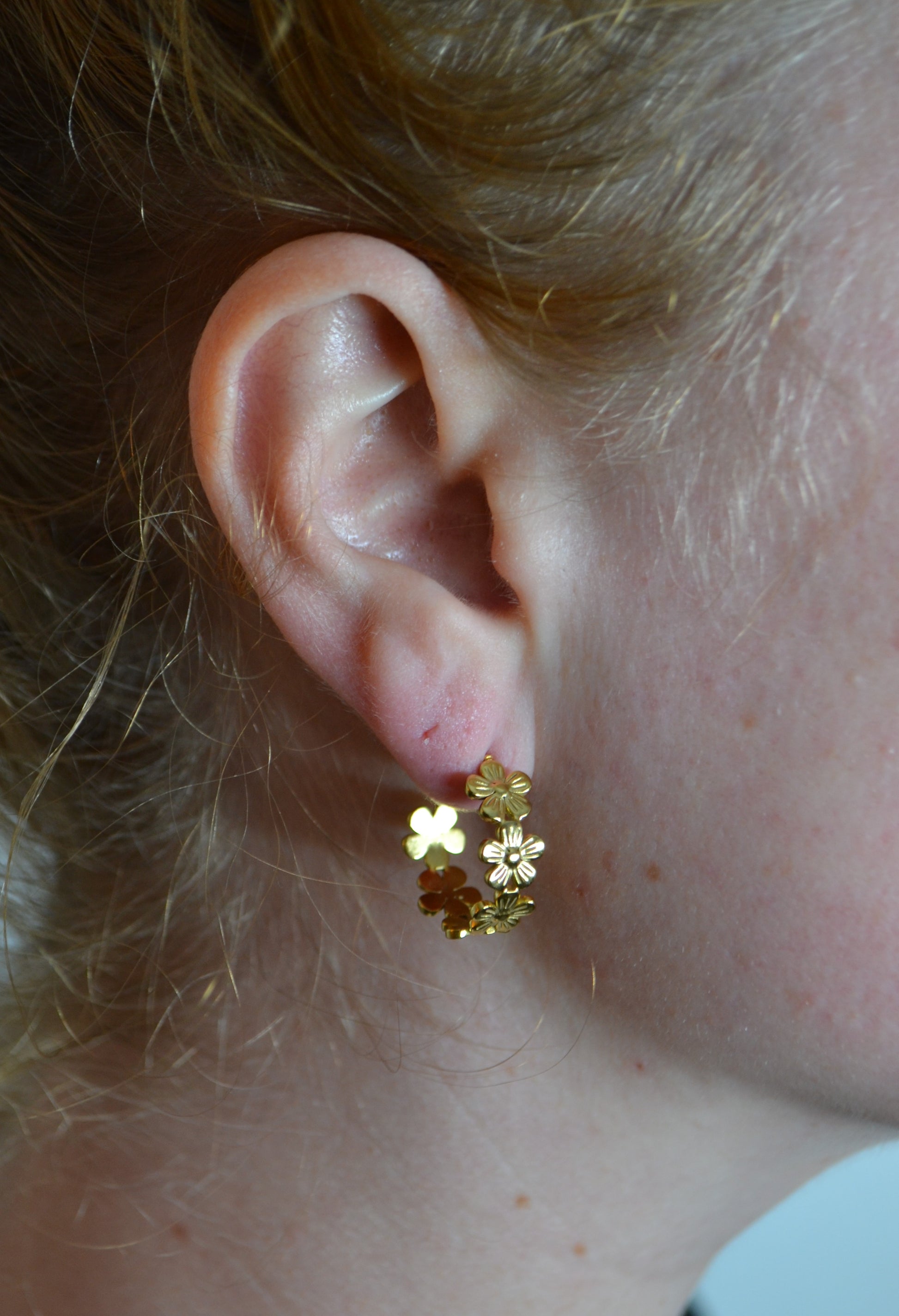 Deze leuke goudkleurige oorbellen zijn leuk te combineren met de flowerfield ring. Matchy matchy.