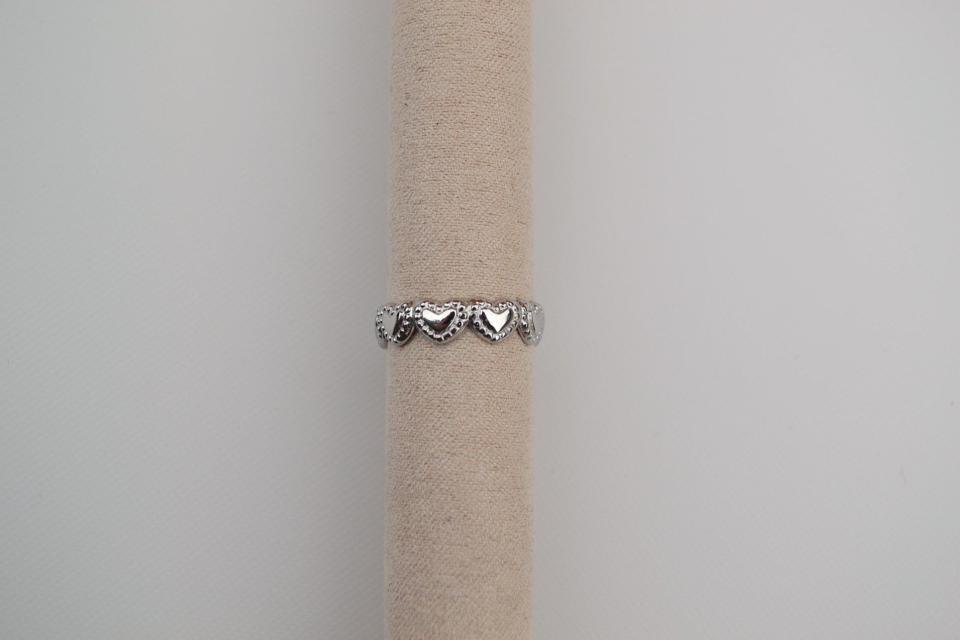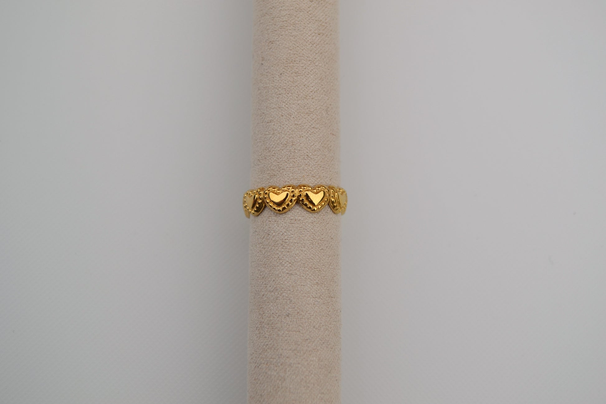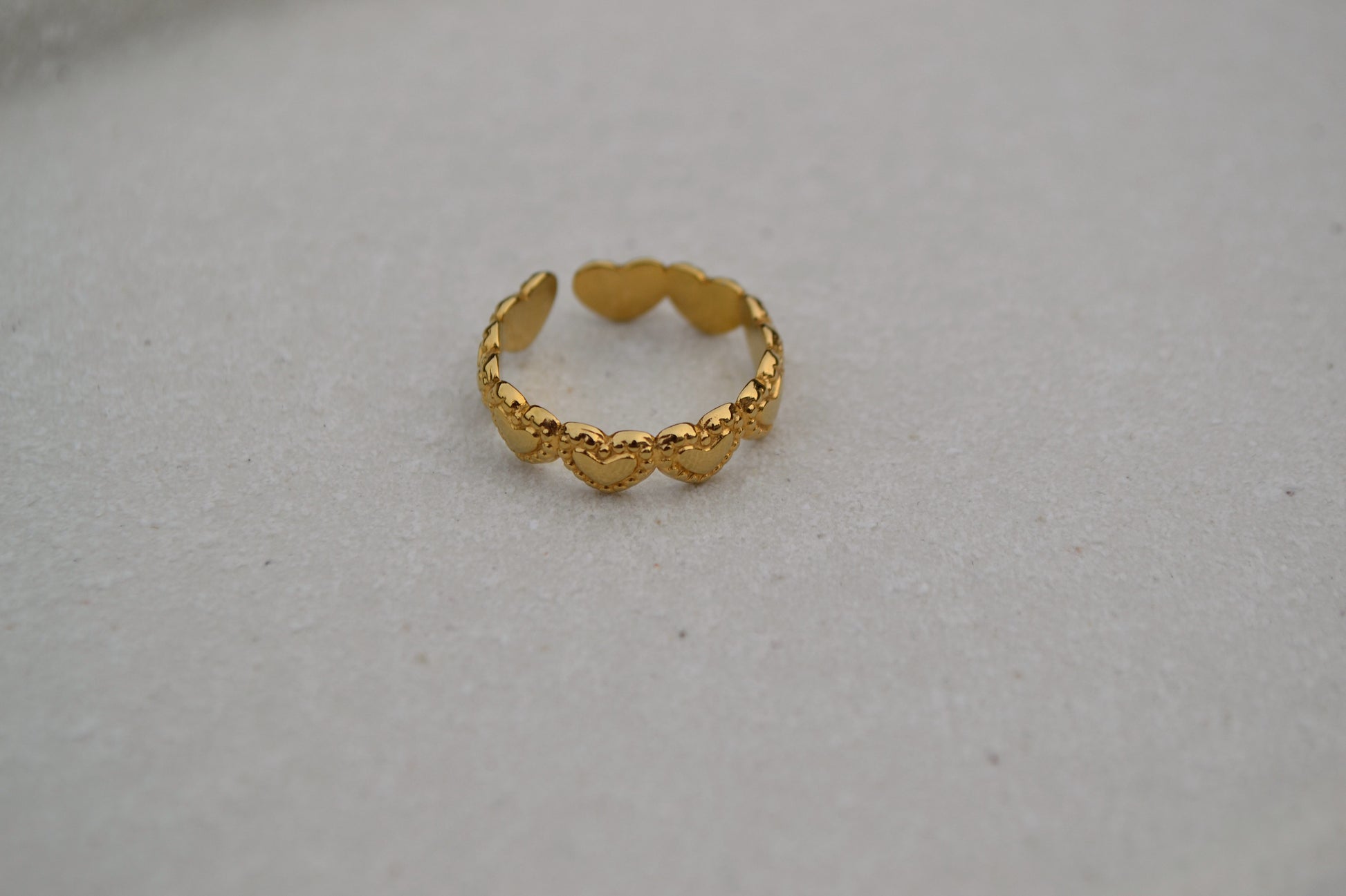 Hoe schattig is deze hartjes ring?! De ring is verstelbaar en gemaakt van roestvrij staal. De ring is te dragen vanaf ringmaat 17. De ring is beschikbaar in het zilver en in het goud.