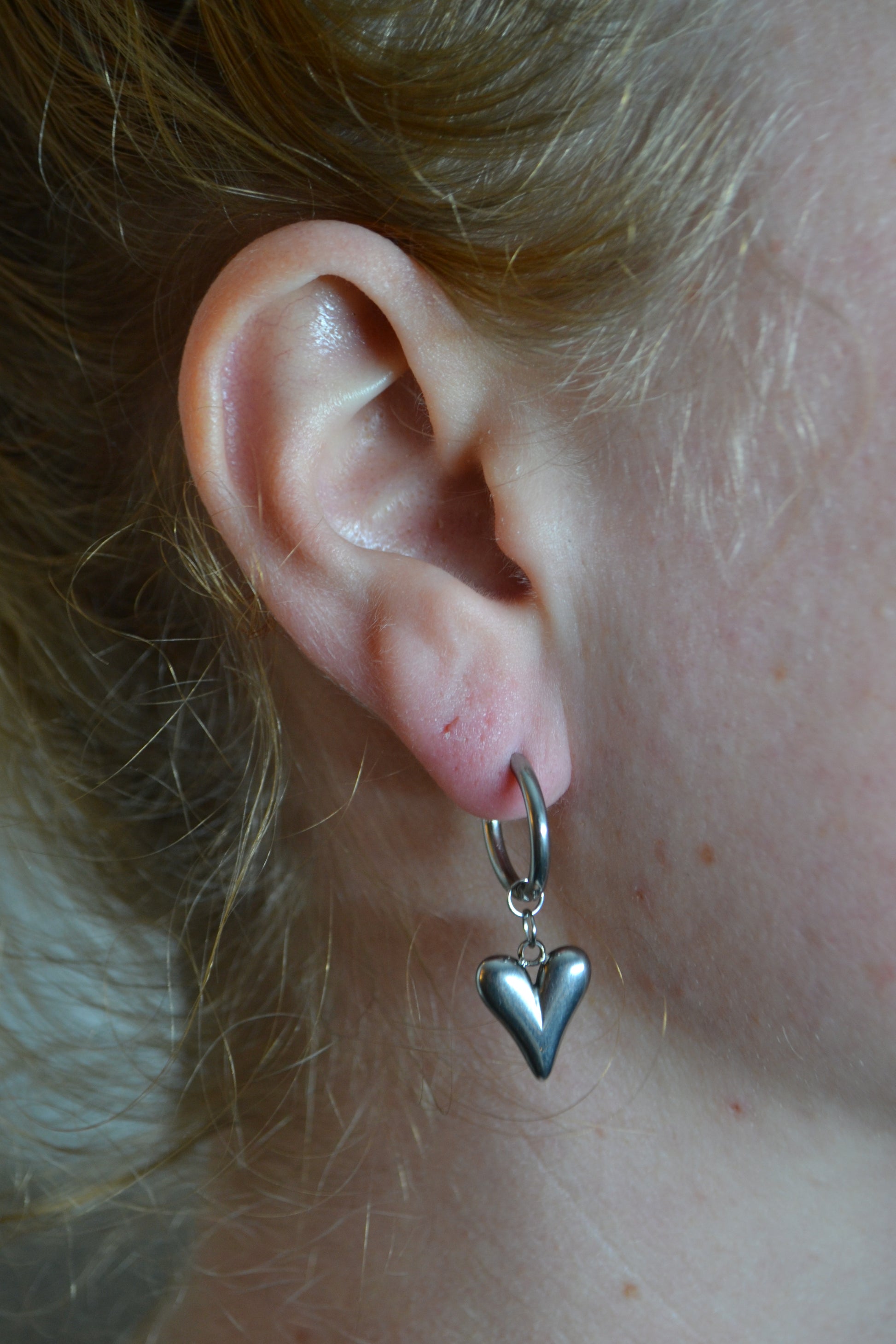 Deze simpele maar stijlvolle zilveren hartoorbellen zijn ideaal voor dagelijks gebruik. Een mooie keuze om je outfit een persoonlijke touch te geven.
