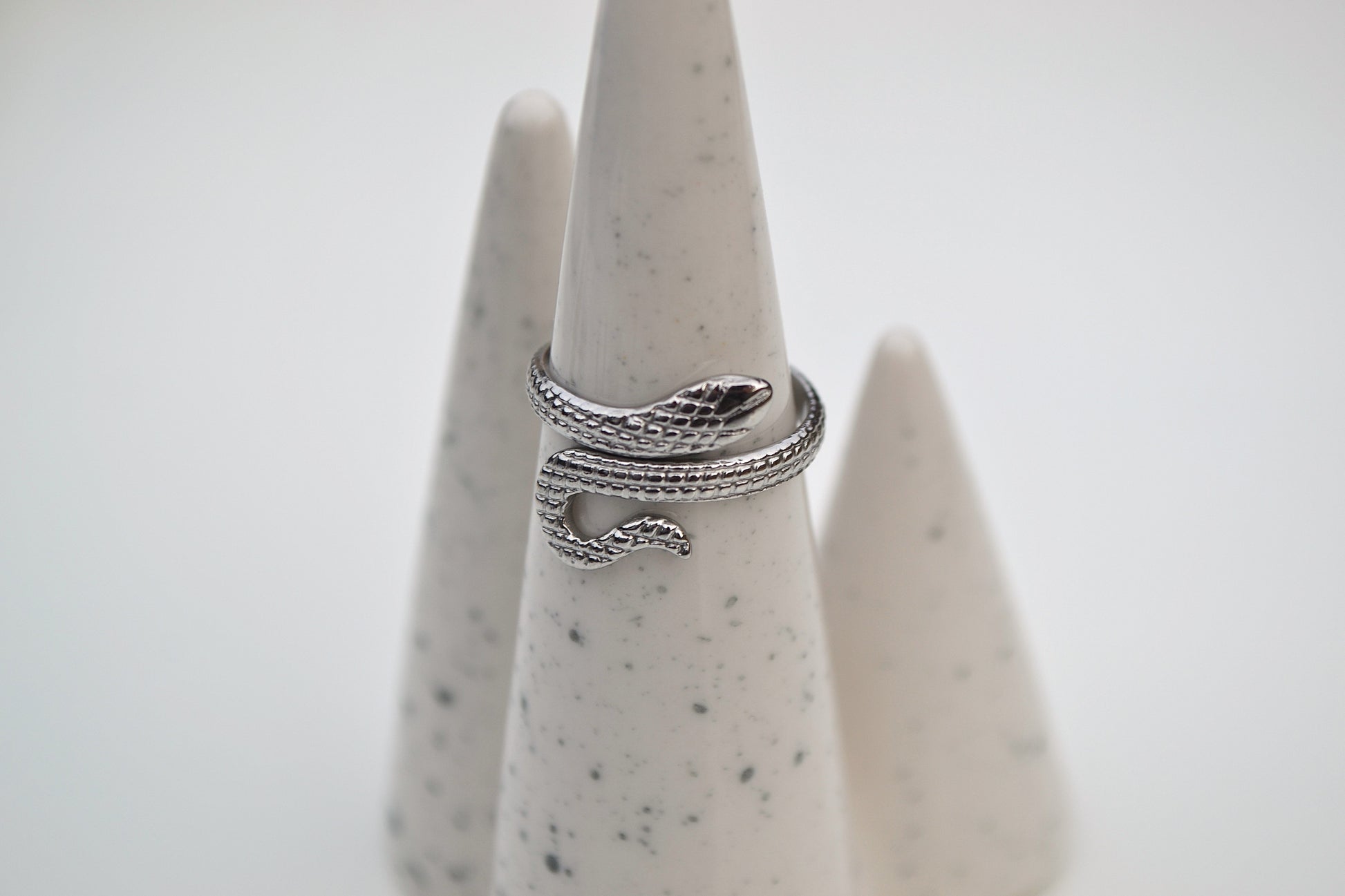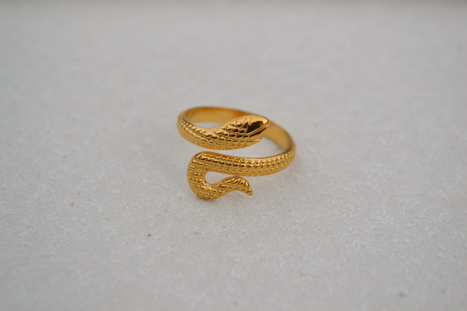 Hoe leuk is deze slangenring?! De ring is heeft een gedetailleerd schubbenpatroon en heeft een elegante vorm. De ring is verstelbaar en gemaakt van roestvrij staal. De ring is te dragen vanaf ringmaat 17. De ring is beschikbaar in het zilver en in het goud.