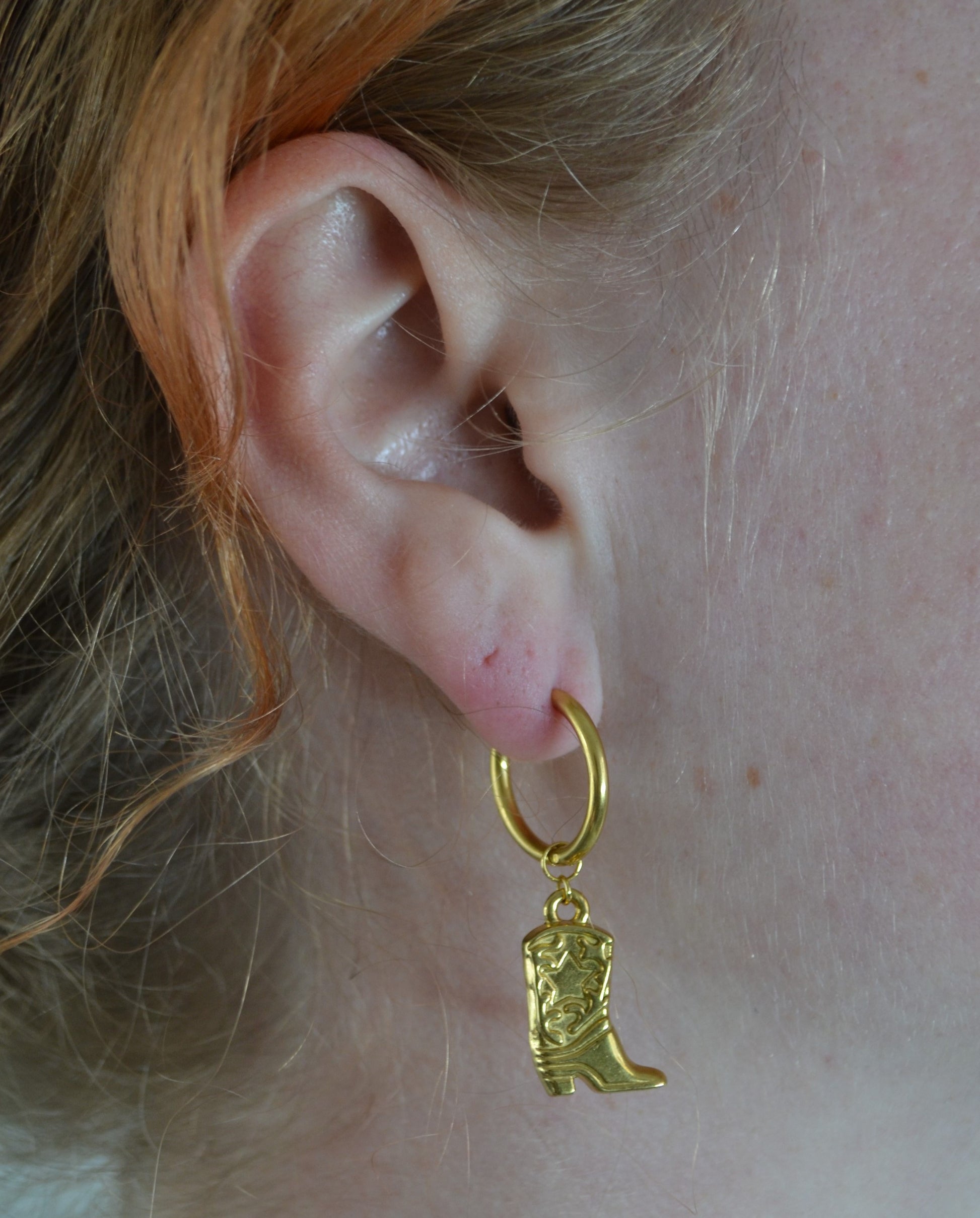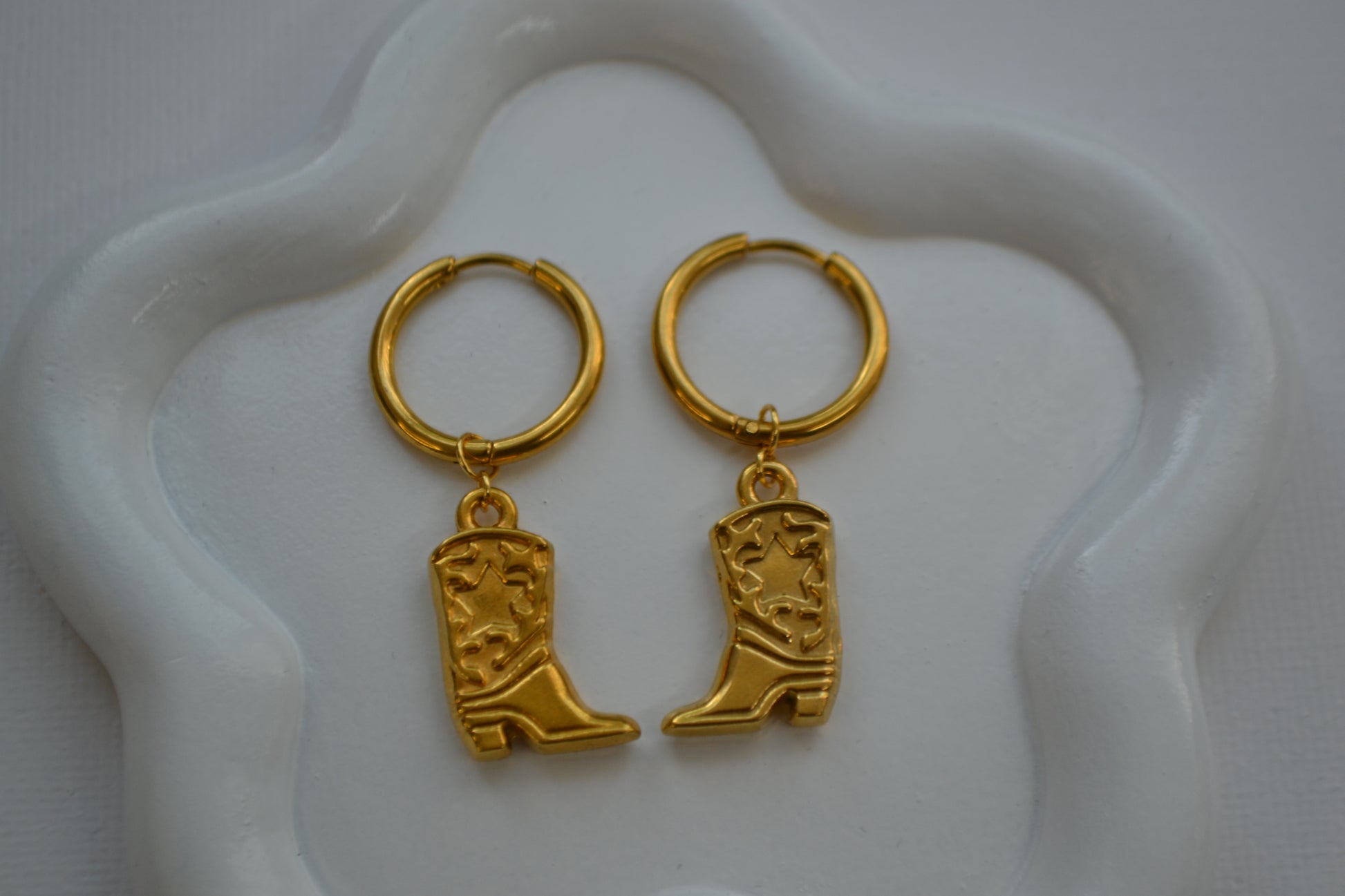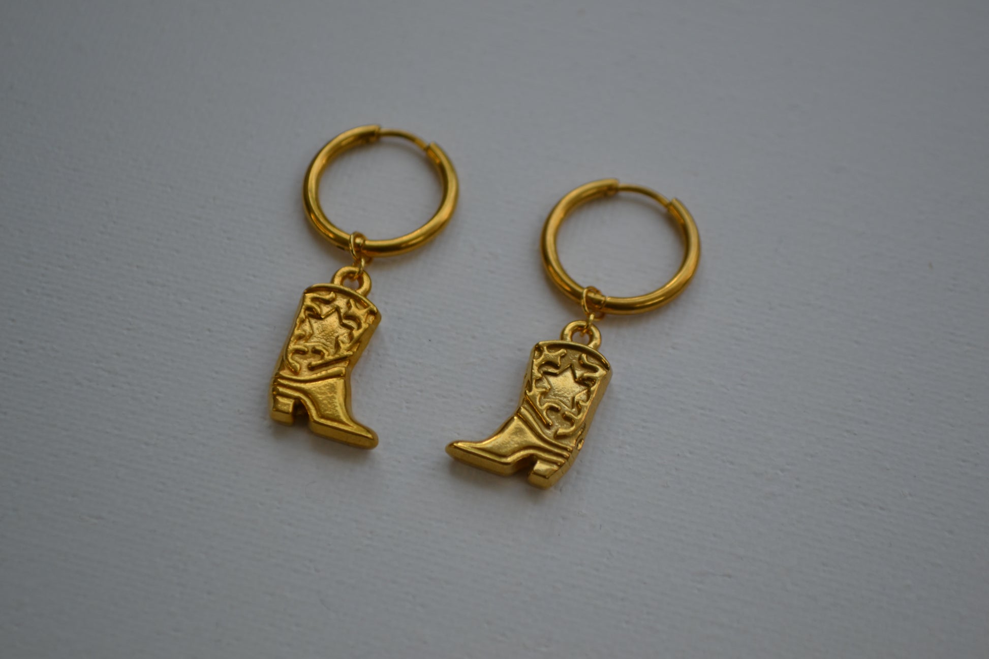 Deze super leuke trendy cowboylaars oorbellen zijn van roestvrij staal.